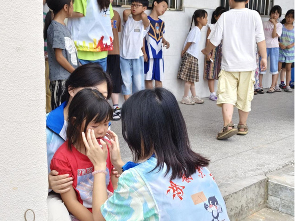 支教队员前往华道小学时,小朋友们依依不舍
