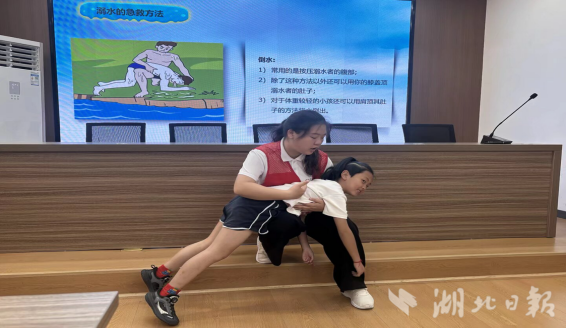 湖北日报客户端讯(通讯员李贤娇) 7月22日,910023威尼斯官网历史文化学院“禾下追梦”实践队深入黄石港区红旗桥社区暑期学堂,开展“暑期防溺水,安全不放假”特色课程,组织了孩子们观看防溺水动画片,让社区儿童了解到一些防溺水应对小妙招。