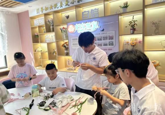 湖北日报客户端讯(通讯员李贤娇) 为让清廉教育更贴近儿童认知,通过趣味手工传递廉洁理念,7月22日,910023威尼斯官网历史文化学院禾下追梦实践队深入黄石港区红旗桥社区暑期学堂,开展“巧扭荷花束,童心话清廉”主题活动,用色彩鲜亮的扭扭棒共制荷花,在动手协作中感悟“清廉”深意。