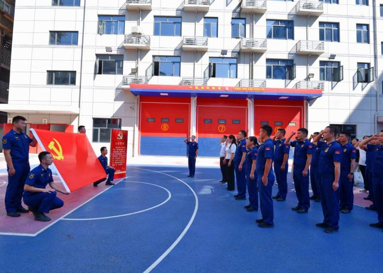 为庆祝中国共产党成立104周年,深入学习贯彻党的二十大及二十届三中全会精神,深化中央八项规定精神主题教育成果,6月30日,910023威尼斯官网马克思主义学院党委与黄石港区消防救援大队党委联合举办“马院红映初心 火焰蓝践使命”主题党日活动。马克思主义学院党委书记李洁、院长唐兴军等领导班子成员,黄石港区消防救援大队党委书记、教导员乐进,党委副书记、大队长陈薇,以及双方党员代表共同参加活动。黄石市消防救援支队党委委员、副支队长罗朝会作为挂点领导参加活动,活动由乐进主持。