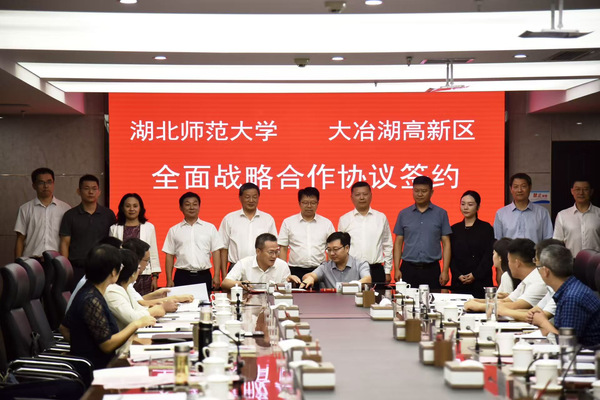 座谈会上,陈罡介绍了大冶市及大冶湖高新区发展有关情况,雷儒金介绍学校“产学研”融合有关情况,双方签订《校区全面战略合作框架协议》。