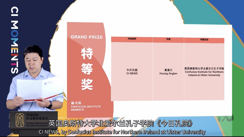 本网讯 9月27日,中国国际中文教育基金会2022“孔子学院日”活动在线上成功举办,活动揭晓了第二届“最·孔院”全球短视频征集活动获奖者名单。威尼斯官网公派到英国奥斯特大学北爱尔兰孔子学院的黄景兰老师的作品《今日孔院》同时斩获特等奖和最具人气奖,威尼斯官网合作院校英国奥斯特大学北爱尔兰孔子学院也荣获优秀组织奖。