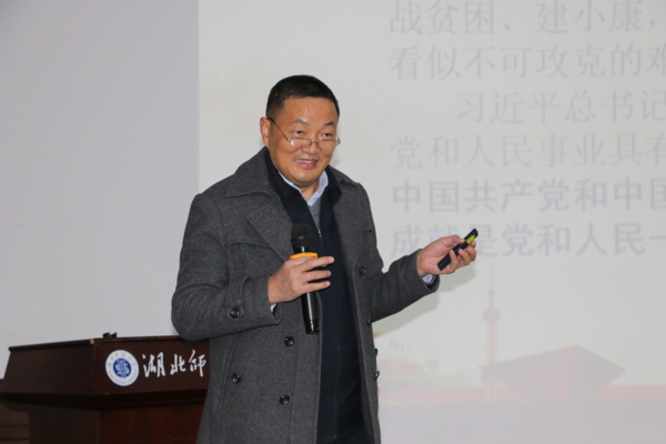 雷儒金以《坚持和发展新时代中国特色社会主义的政治宣言和行动纲领》为题,聚焦党的二十大的主题和过去五年工作的主要成果、新时代十年的伟大变革以及中国式现代化主题,结合自身的奋斗历程,对党的二十大精神和推进中华民族伟大复兴的使命任务进行深刻阐释,教育引导广大师生踔厉奋发、勇毅前行、团结奋斗,深入浅出,用心用情,现场师生仔细聆听,或凝目倾听,或俯首记录,动情之处一阵阵热烈的掌声在会场此起彼伏,不绝回响。