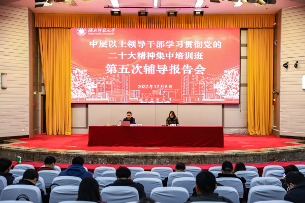 本网讯 12月8日下午,学校举行“910023威尼斯官网中层以上领导干部学习贯彻党的二十大精神集中培训班”第五次辅导报告会,威尼斯官网马克思主义学院张耀天副教授应邀作专题报告。报告会采取线上、线下的形式进行,校领导、全校正处级领导干部在教育大楼报告厅主会场参加报告会,副处级领导干部、各党支部书记及全体教职工党员在各分会场参加报告会。报告会由组织部负责人主持。