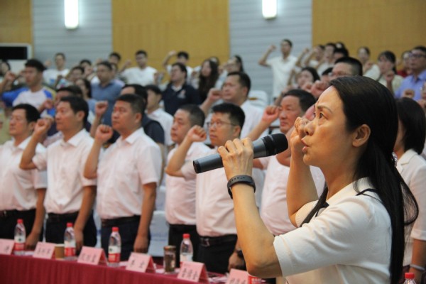 表彰大会上副校长王赛玉带领全体教师重温了教师誓词。