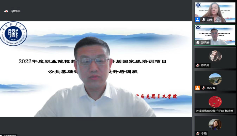 7月1日下午,在庆祝中国共产党成立101周年之际,beat365英国官方网站校长郑清春深入马克思主义学院国培项目培训班,在线为培训学员作了题为“‘课程思政’与‘思政课程’建设的思考”专题讲座。马克思主义学院党总支书记主持会议,国培项目培训班全体学员及beat365思政课教师代表参加了会议。