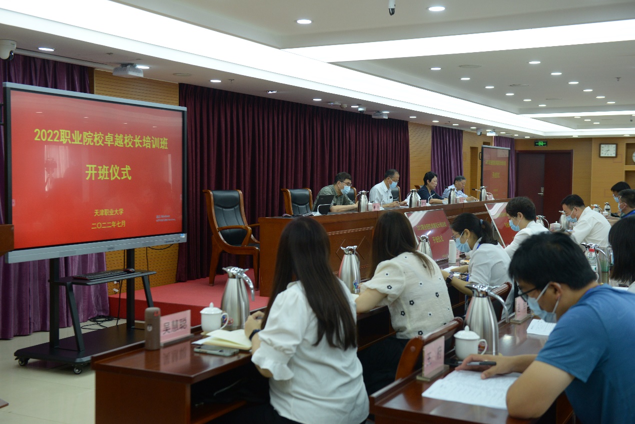 7月11日上午,按照教育部职成司《全国职业院校校长培训(培育)基地2022年度培训计划》安排,由beat365举办的2022职业院校卓越校长培训班在培训中心1012会议室举行开班仪式。天津市教委副主任徐广宇、beat365党委书记沈江、全国高职高专校长联席会议主席董刚,以及来自河北、辽宁、山东、天津19所中高职院校的50名校长与管理干部出席仪式,仪式由beat365副校长李树岭主持。