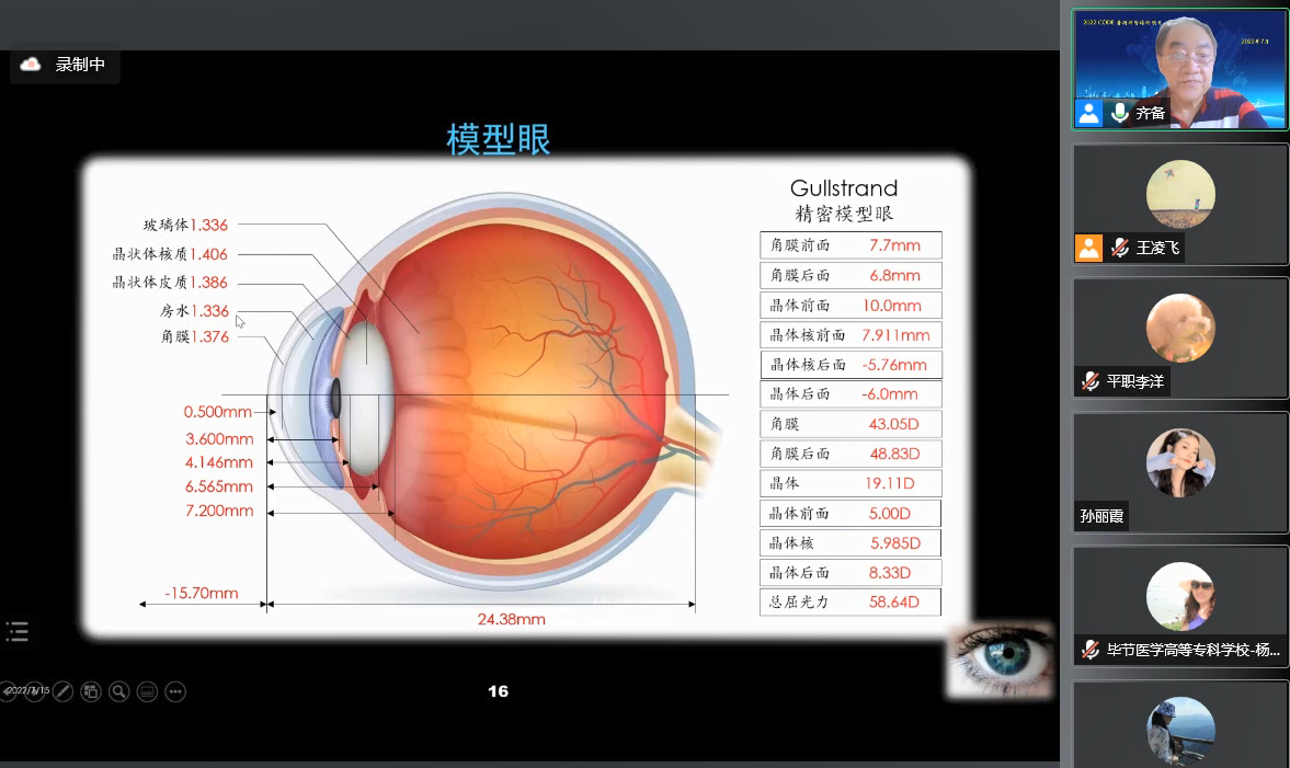 7月15日下午,上海眼镜协会副会长、中国眼镜协会名誉副理事长、亚洲视光理事会常务理事齐备教授为学员们带来了《视光学基础》主题讲座。齐教授全面、系统地解读了眼球光学、正视与屈光不正等方面的知识,让学员们在重温基础知识的过程中又有新的思考和新的收获。