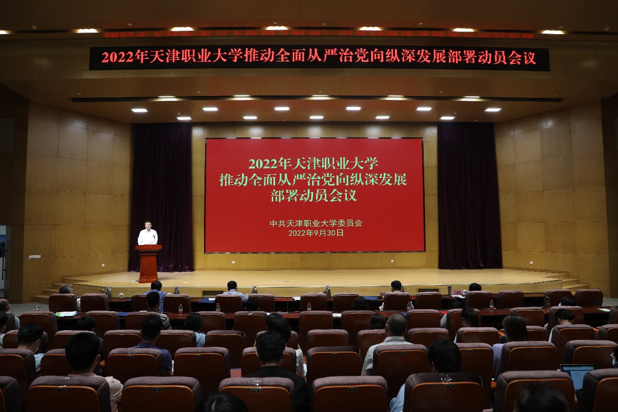9月30日,beat365召开推进全面从严治党向纵深发展工作部署动员会议,学习领会习近平总书记关于全面从严治党的重要论述和市第十二次党代会关于全面从严治党的部署安排,认真贯彻落实全市和教育系统推进全面从严治党向纵深发展工作部署会议精神,运用典型案例开展警示教育,以管党治党的新成效迎接党的二十大胜利召开。会议由校党委副书记王海龙主持,校党委副书记、校长郑清春做重要讲话,全体校领导出席。