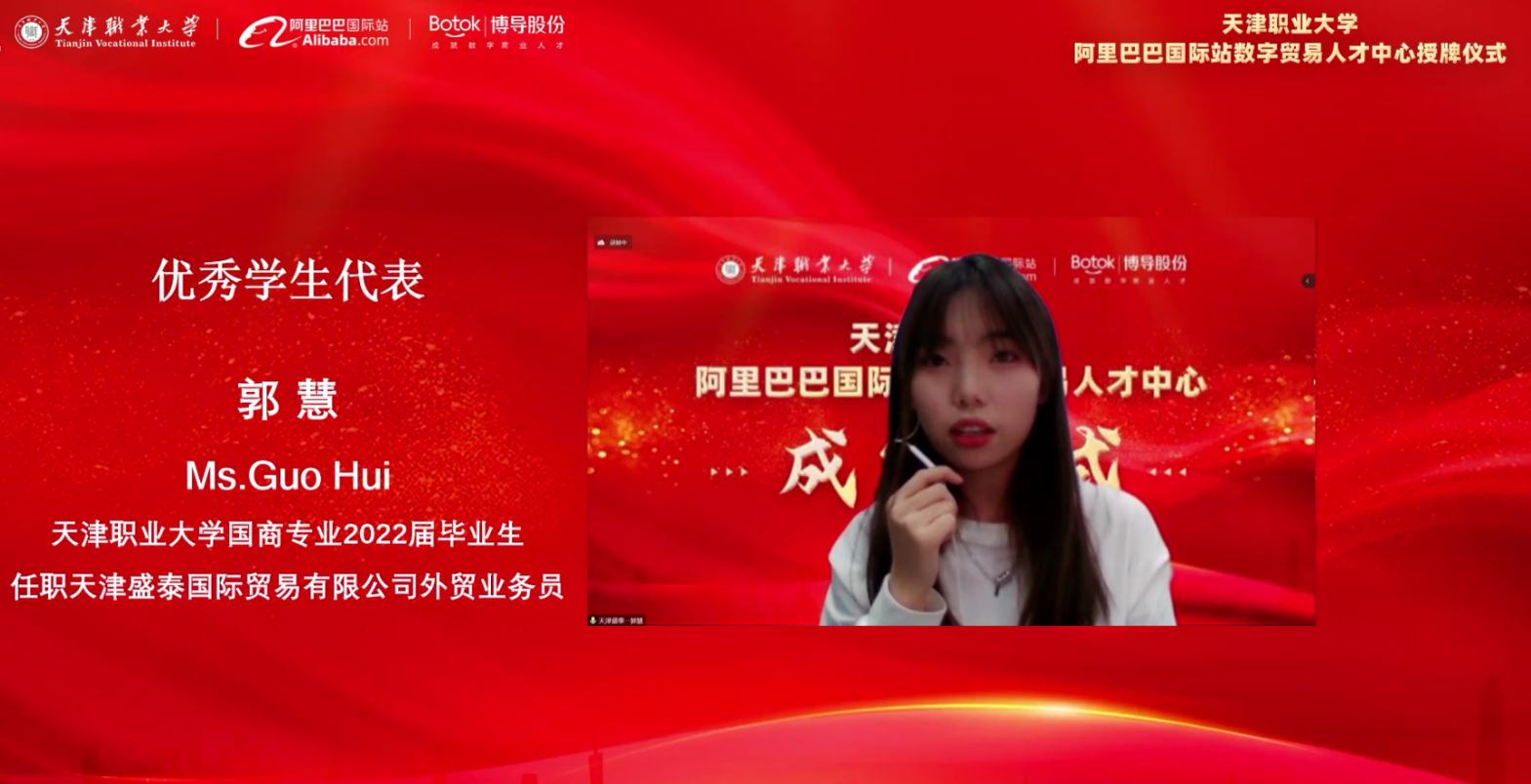 阿里巴巴国际站校企合作负责人孙孟洋表示,作为天津首个阿里国际站数字贸易人才中心,beat365英国官方网站承载着为天津外贸输送高质量数字贸易跨境电商人才的重任,校企双方通过共同研发职业标准,探索创新产教融合、精准化技术技能人才培养模式,以项目实战和课证融合的教学模式培养跨境电商人才,破解企业人才需求侧与高校人才供给侧的矛盾。