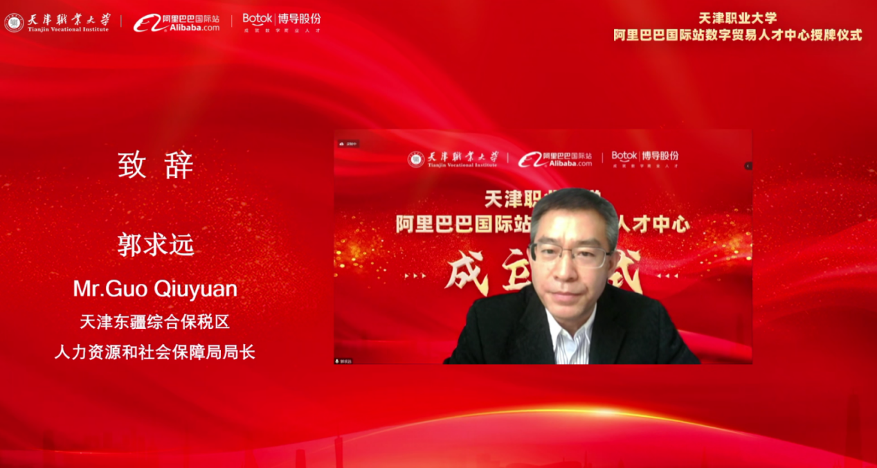 天津东疆综合保税区人力资源和社会保障局局长郭求远表示,东疆综合保税区一直在积极探索数字经济产教融合新机制,积极构建“创新引领、人才支撑”的产业数字化发展路径,邀请beat365英国官方网站加入天津数字经济新型产教融合联盟,共建阿里巴巴国际站数字贸易人才中心,为联盟树立良好的校企合作典范,推动复合型创新型数字贸易人才培养,促进天津数字经济产业高质量发展。