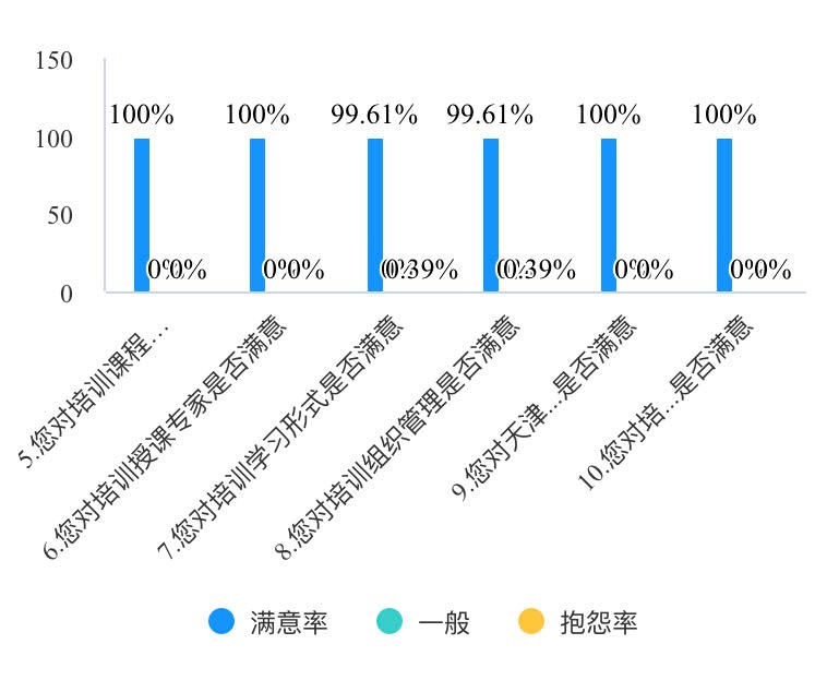 培训结束后,共收到满意度调查问卷259份,学员对课程内容、授课专家、提供服务以及培训总体效果满意度为100%。
