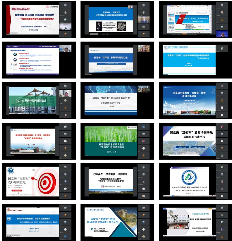 2022年12月12日至14日,在教育部教师工作司和天津市教委的关心支持下,教育部首批国家级职业教育“双师型”教师培训基地专题研修四班如期举办,来自全国各地的26家国家级“双师型”教师培训基地和13家省教育厅选派的职业院校的457位领导和教师共聚云端参加研修。