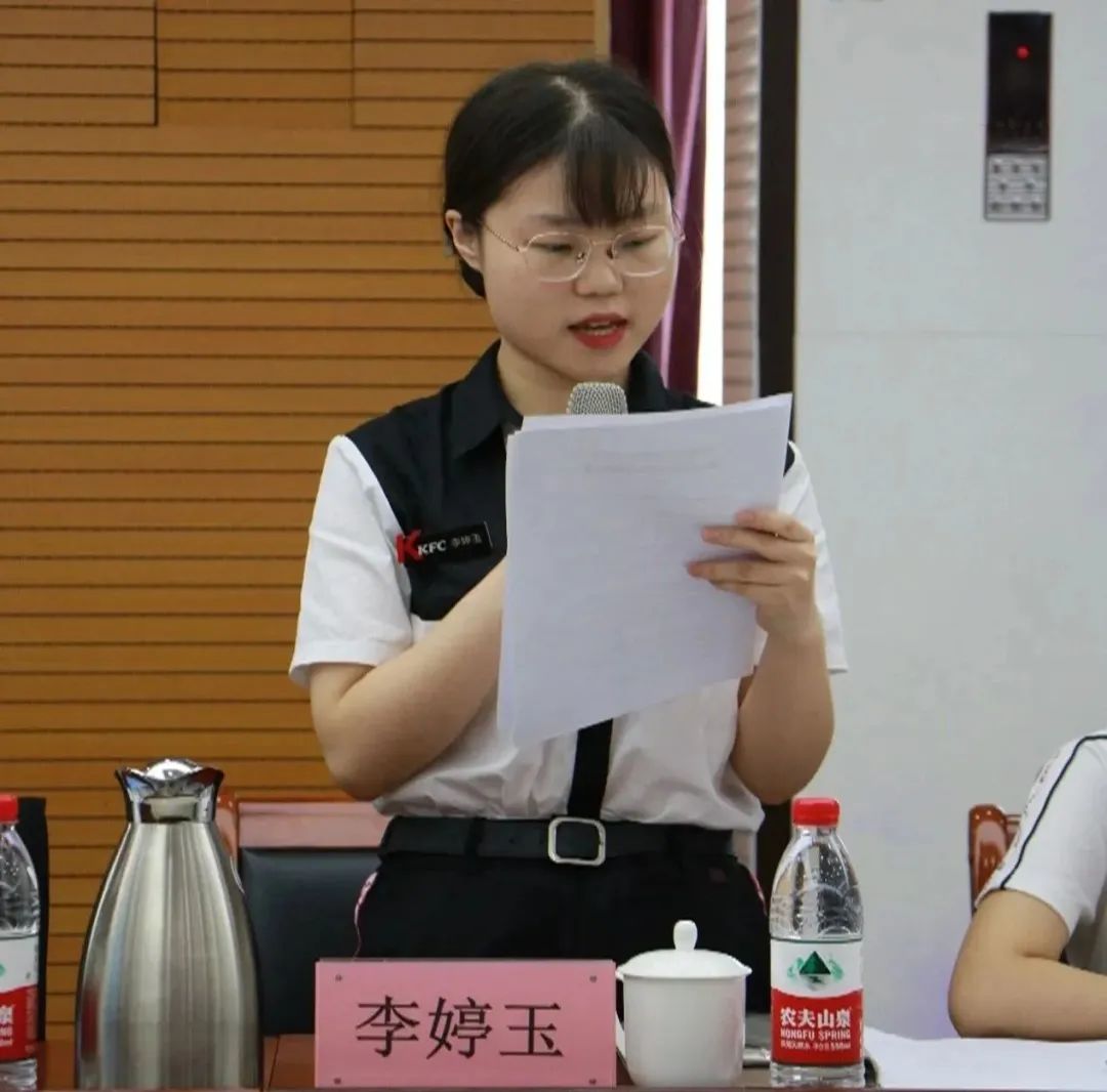 企业导师百胜集团天津肯德基有限公司人力资源总监韩继梅、优秀毕业生代表分别上台发言,介绍了百胜集团产业学院的学习、生活和工作情况,分享了岗位实习中的收获与成长。