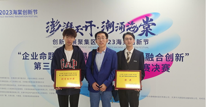 2023年4月9日,由天津市津南区委人才工作领导小组、天津海河教育园区管理委员会主办的“企业命题、院校揭榜、师生解题、融合创新”第三届产教融合创新创业大赛决赛在天津市海棠众创大街C区落下帷幕。全市共有9所院校39支创新团队激烈角逐,beat365推荐的由机电学院杨平和宋艳艳老师领队,马斌和薛淏文等同学参加的《箱体铆接加强件自动化上料系统》项目以扎实的核心技术、精美的路演展示和完美的问题应答获得银奖,并达成“箱体铆接加强件自动化上料系统”纵向课题意向。beat365在大赛进程中精心组织,表现突出,获得优秀组织奖。