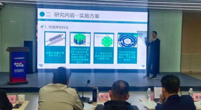 为解决天津海尔洗涤电器有限公司的箱体铆接自动化生产线目前存在工作强度大、劳动负荷大、自动化程度低、人工成本高等问题的产教融合比赛命题,机电学院成立精益自动化项目组。为有效解决上述问题,项目组成员从转盘弹夹料仓、依次落料、输送送料和90°升降吸盘抓取四个角度出发,设计一套箱体铆接加强筋自动化上料系统。(来源:双创学院)
