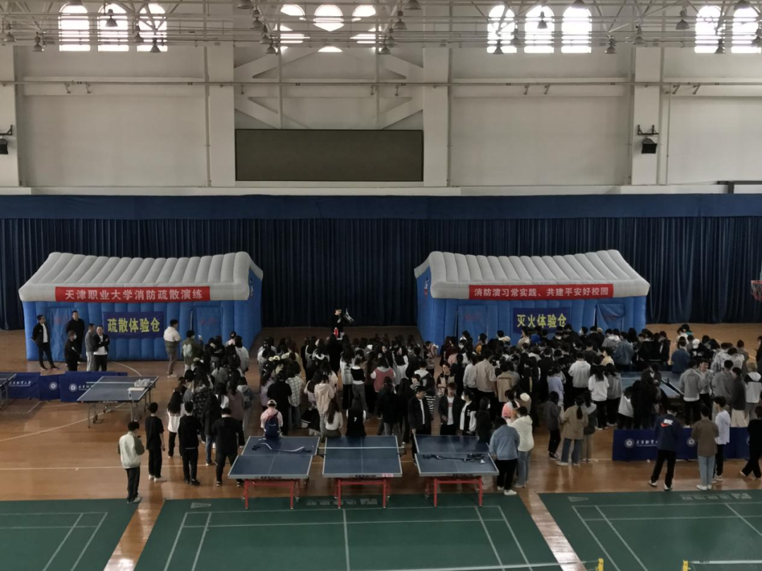 本次活动在海河园校区体育馆开展,活动现场相关工作人员进行消防安全知识讲解,从灭火器材的现场使用体验到宿舍火情的灭火器模拟使用和逃生模拟体验,让同学们真正掌握在火灾中能够迅速逃生、自救、互救的基本方法,增强了学生火灾逃生的应对能力。(来源:安全部)