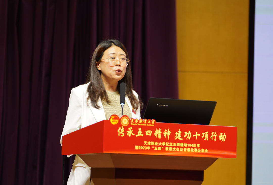 天津市优秀共青团干部、校团委王笛做《用初心服务青年成才 用真爱陪伴青年成长》分享展示