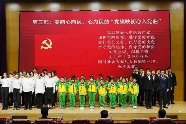 活动中,小淀小学少先队员代表、职业大学新发展团员代表、学生党员代表,以铿锵有力的声音集体重温入队、入团、入党誓词,展现入队、入团、入党——青年追求政治进步的“三部曲”场景。宣誓仪式充分展现了五四精神的传承、砥砺奋进的信念、立志报国的决心,充分调动了少先队员的爱国热情,切实增强了少先队员们的光荣感和组织归属感。