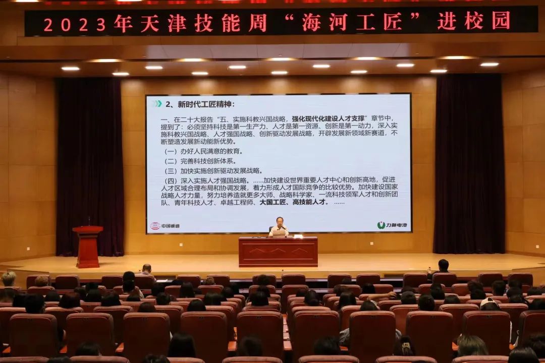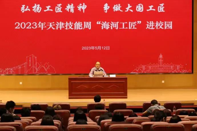 5月12 日,学校按照市人社局2023年“天津技能周”工作安排,在图书馆报告厅举行了“海河工匠”进校园活动。教务处与学工部共同组织了以“弘扬工匠精神,争做大国工匠”为主题的讲座,旨在展示我市技能人才队伍建设成果,迎接中华人民共和国第二届职业技能大赛(以下简称第二届全国技能大赛)在我市举办,在全市范围内多角度、全覆盖,大力弘扬劳模精神、劳动精神、工匠精神,在全社会营造劳动光荣、技能宝贵、创造伟大的良好氛围。教务处负责人主持讲座,宣讲此次活动主题。在贯彻党的二十大精神开局之年,实施“十四五”规划承上启下的关键之年,以习近平总书记视察我市职业技能公共实训中心十周年和第二届全国技能大赛在我市举办为契机,集中宣传我市技能人才队伍建设成果,大力实施“海河工匠”建设,弘扬劳模精神、劳动精神、工匠精神,引领广大劳动者特别是青年一代热爱技能、投身技能、提升技能,成为爱党报国、敬业奉献、技能精湛、素质优良的高技能人才和大国工匠。铁科纵横(天津)科技发展有限公司,第二届海河工匠, 中国铁道科学研究院集团公司特聘高级技师,武清区第六届人大代表,天津市"张洪宾技能大师工作室"领衔人张洪宾分享了自身的求学经历,他秉承着传承工匠精神,一路拜师学艺,作为生产技能骨干,带领团队完成了多项技术难题,在国内外铁路行业中达到领先水平,展现了大国工匠精神。