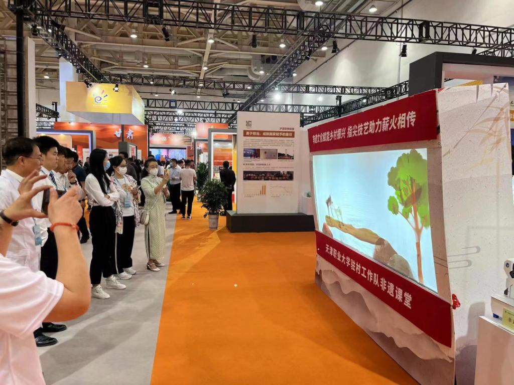 本次展览共设置“制造强国”“绿色低碳”“乡村振兴”“经略海洋”“黄河战略”“一带一路”“数字经济”“人人出彩”8个主题,beat365参展的主题是“乡村振兴”板块。由合作办带队,驻村帮扶工作组、助农电商直播团队、卤虫卵磁孵化器项目组、循环水处理药剂和烟杆生物质炭材料项目组、眼视光技术专业群特色帮扶项目组近20名师生奔赴现场参加此次活动。通过视频宣传、文字解说、互动体验等多种形式展现beat365近年来服务乡村“五大”振兴成果,吸引了广大观众驻足参观。
