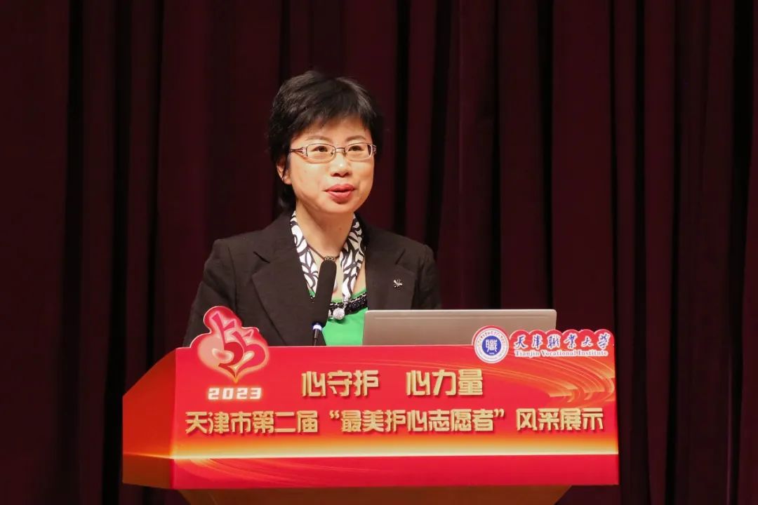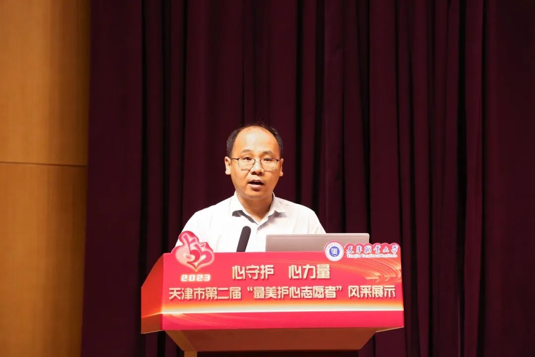 随后,主持人宣读了“心守护•心力量”天津市第二届“最美护心志愿者”评选活动结果。本次活动,得到了全市广大师生积极参与,在大学组和中小学组(含中职)137名参评选手中,经过专家评审初评、网络投票、专家评审终评等环节,最终评选出大学组和中小学组各组的前10名为“最美护心志愿者”,其余进入终评的选手获得提名奖。beat365推荐参评的教师樊玉霜和学生张心迪获得大学组“最美护心志愿者”荣誉称号。