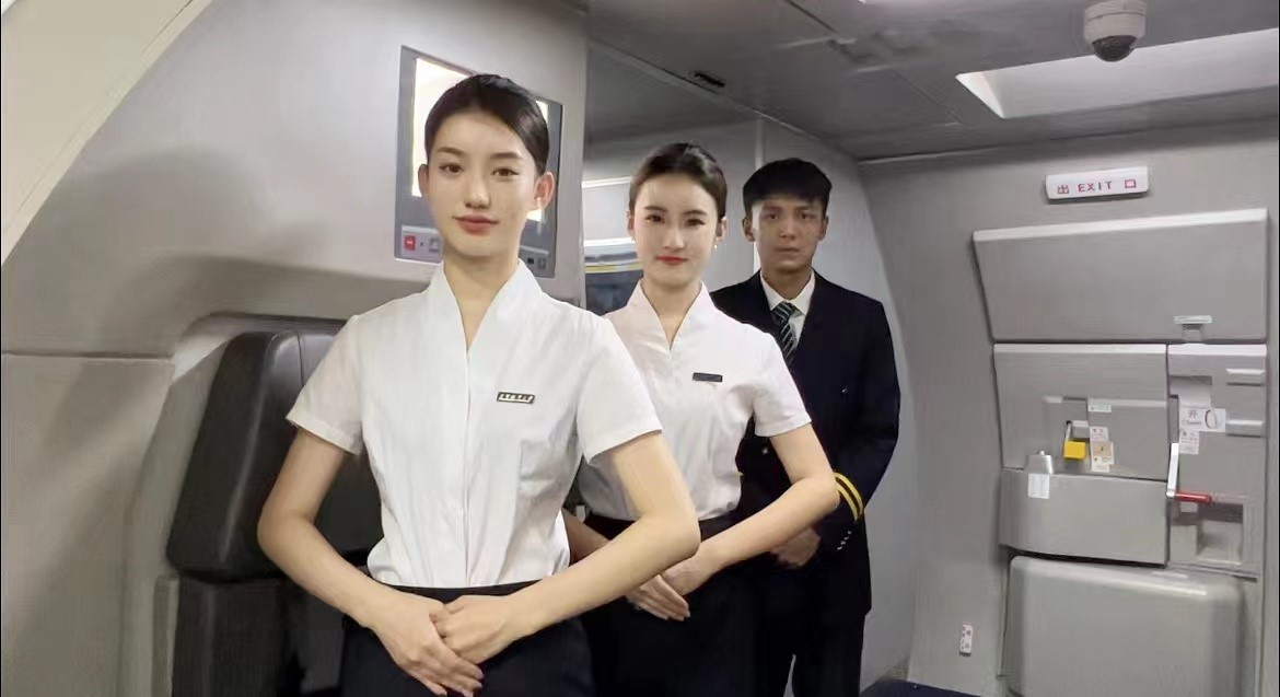 图5空乘礼仪团进行机上迎送客服务表演