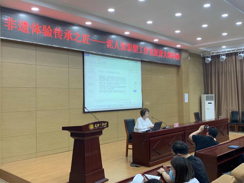 校企合作类活动中,“非遗体验项目—泥人张彩塑工作室夏青大师讲座”泥人张彩塑工作室夏青老师讲授题为“泥人张”彩塑的形成与发展的讲座,在1个多小时的讲座中讲授了泥人张发展和传承、泥人张的特点,并分享了泥人张手工的制作特点的技艺。