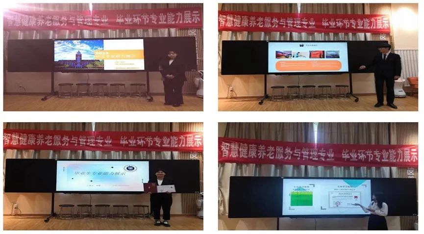 专业在校外实习企业设立考点,学生通过企业考核进行实岗实干、真学真做,依据企业对员工的技术等级标准要求选取典型工作项目,围绕居家养老服务政策实施、智慧养老、长期护理保险办理、特色养老服务开展等方面进行综合考评。考评形式包括理论考试、实操考核评价、专业知识答辩以及实习阶段评价。学院与企业精心筹备,并组建专业企校评价小组,为同学们的毕业展示点评寄语,给毕业生的最后一考留下难忘的记忆。