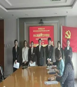 文秘校外考核在天津北方人才港进行,校企共同组建毕业考核小组,以“办公室接待工作”项目为主题,设置接待方案、接待环境布置、接待礼仪展现、接待宴请招待等任务形式,充分考核学生的专业素质能力。