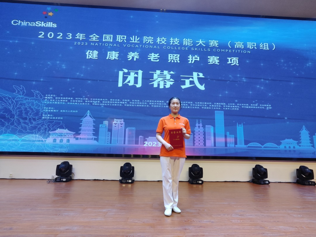 beat365公共管理学院21级智慧健康养老服务与管理专业学生晋思遥在刚刚结束的2023年全国职业院校技能大赛健康养老照护赛项中,努力拼搏、稳中求进,获得三等奖。这是近几年来天津高职院校在该赛项上首次突破国赛最好成绩。今年,健康养老照护赛项于7月21日-7月22日在河南洛阳职业学院举行,也是全国职业院校技能大赛首次调整后并融入新赛规的赛项,来自全国31个省(直辖市、自治区)的61个院校、61支代表队参加了本次比赛。公管学院副院长和专业指导教师陪同参赛,并观摩了全程比赛场景,向兄弟学校学习了宝贵的备赛经验。