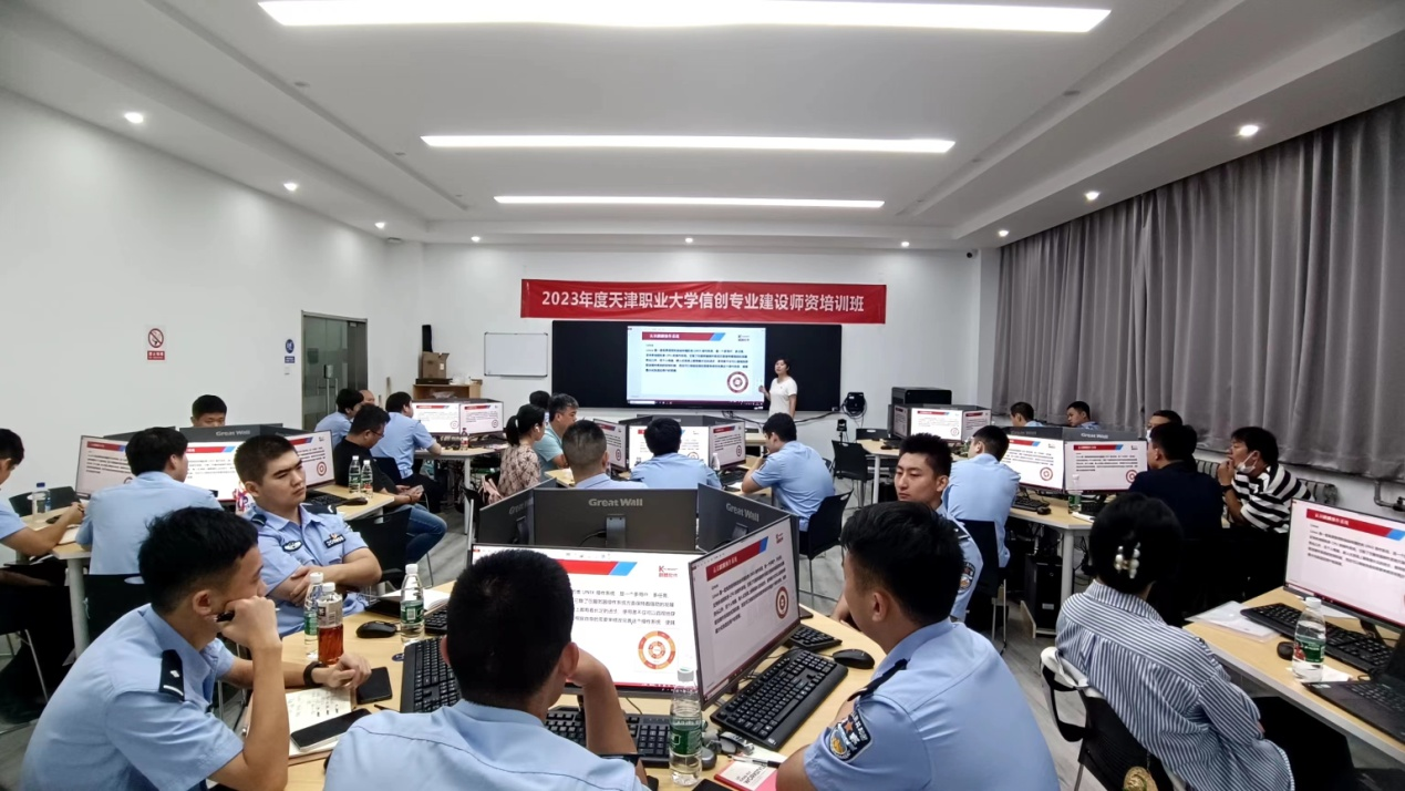 为持续推进主题教育取得实效,服务国家发展战略,助力我市“十项行动”见行见效,落实全民数字素养与技能培训基地和工信部麒麟工坊建设要求,全国信创产业职业教育集团理事长单位beat365英国官方网站,于2023年8月21日,开展了为期5天的信创专业建设第三期师资培训,并于8月25日顺利结业。来自天津、山东、广东、浙江、河北等五个省市本科及高职院校教师、企业技术工程师以及来自天津市公安局特警总队的公安干警共计29名同志参加培训。郑清春校长亲切会见全体培训教师及参训学员并与大家合影留念,麒麟软件有限公司天津事业部技术支持部总经理魏硕同志、飞腾信息技术有限公司高校合作部总经理钱程东同志也专程来校与参训学员沟通交流。