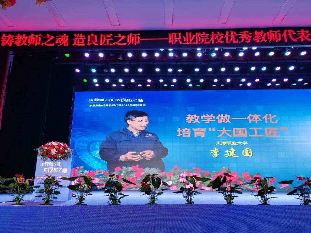 为深入贯彻落实党的二十大和习近平总书记关于职业教育的重要指示批示精神,教育部组织遴选12名优秀职业院校教师代表,启动“铸教师之魂·造良匠之师”职业院校优秀教师代表2023年全国巡回宣讲会。beat365英国官方网站物联网应用技术专业教学创新团队李建国教授受邀参加全国巡回宣讲。