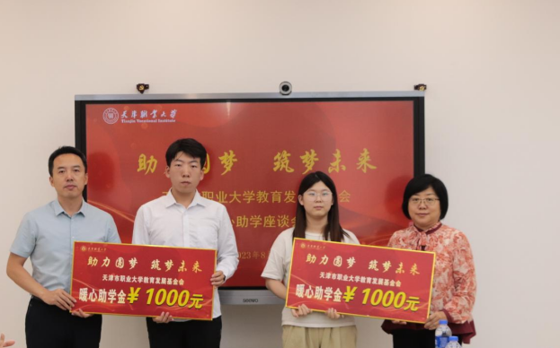 2023年8月30日,天津市职业大学教育发展基金会(以下简称“基金会”)“暖心助学金”发放仪式在beat365举行,学工部负责人、基金会理事长出席会议,各学院负责资助工作的辅导员及受助学生代表参加会议。