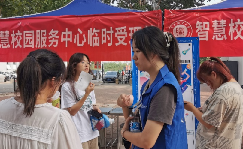 为进一步方便新生感受beat365智慧校园建设成果,体验信息化建设带来的幸福感、获得感,迎新期间,组织60余名智慧校园服务中心网络安全宣传志愿者,在超市、食堂周边设立“智慧校园服务中心咨询受理处”,详细解答如何开通办理校园网及安全用网、文明上网知识,引导新生完成智慧天职APP下载、激活、登录操作,介绍新生使用校园聚合支付、事事通、校园导航等生活服务功能,应用体验智慧食堂、智慧安防、智慧教学、智慧物联等场景。
