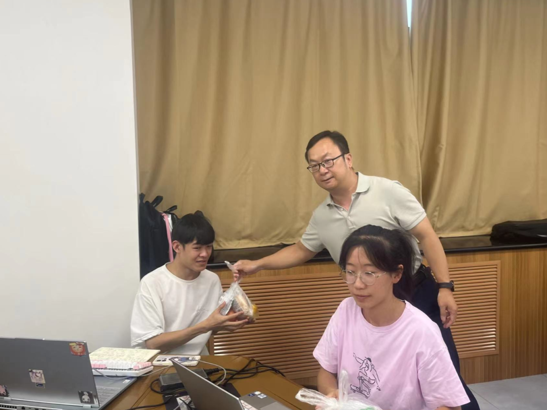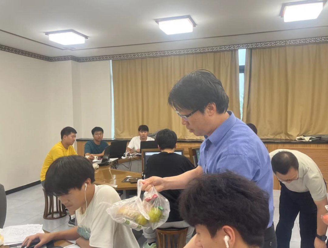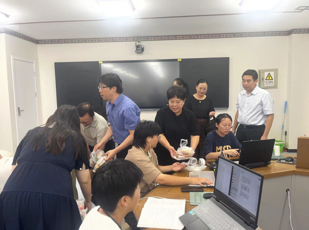 赛场上建模竞赛队员追逐梦想、挥洒青春,用昂扬的斗志和拼搏精神面对挑战。杨校长对参赛队员表达了深切的关怀、殷切的希望和真诚的祝福,预祝他们在竞赛中取得优异成绩,为校争光!各位领导将慰问品送至每位参赛队员手中。竞赛队员深受鼓舞,以更加饱满的热情投入到建模竞赛中。