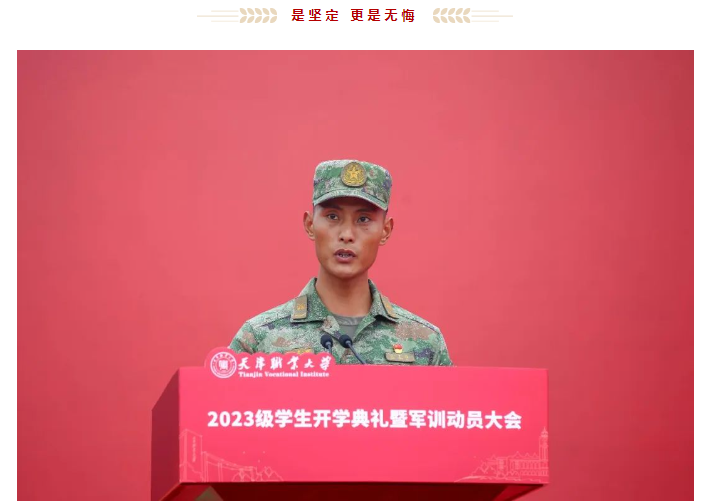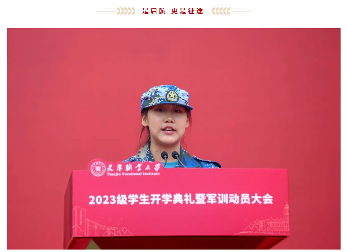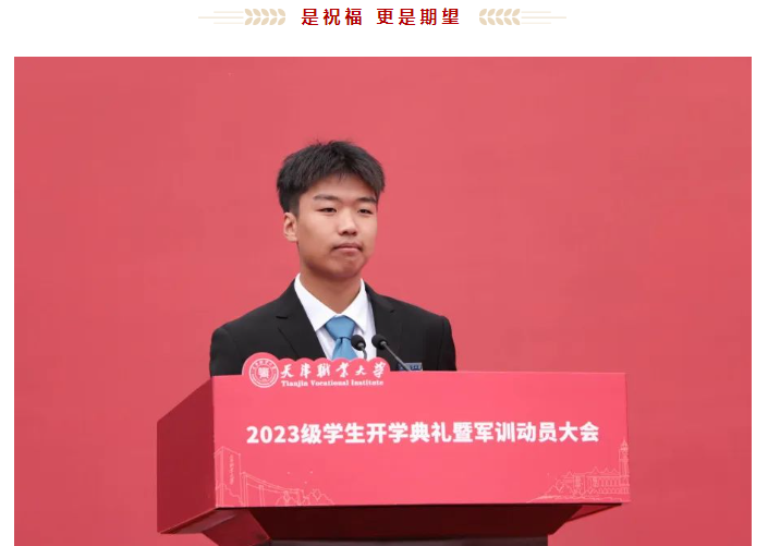 新生代表电子信息工程学院2023级人工智能技术应用2班李佳欣同学发言表示,作为新天职人,希望能和同学们一起,在天职这方热土上学会成长,守望理想;砥砺品行,学有所长;传承文化,锤炼工匠精神。