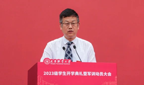 校党委副书记、校长郑清春老师代表全校师生,对2023级新同学的到来表示诚挚欢迎,用“三个相信”“三份承诺”,帮助同学们理解职业教育、了解职业大学,更加坚定了大家努力学习、立志成才、报效祖国的信心,并希望同学们树立技能报国理想信念、扛起拼搏奋斗青春旗帜、怀揣感恩之心回报社会、严守底线思维健康成长,踔厉奋发,勇毅前行,用青春热血投身技能报国的伟大实践。