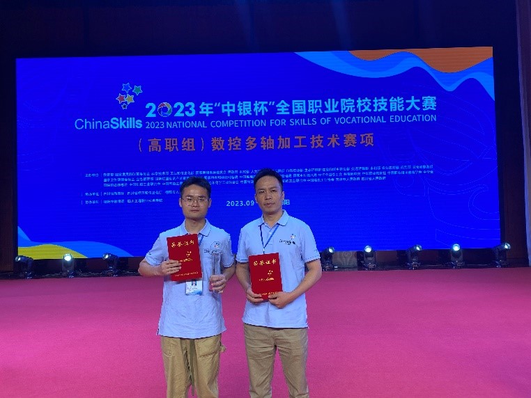 2023年9月25日-27日,全国职业院校技能大赛高职组数控多轴加工技术赛项(师生同赛)在四川工程职业技术学院举行。全国共有55支参赛队进行了激烈角逐,本赛项为教师和学生组队的团体赛,在强手云集的比赛中,学校机械工程实训中心教师刘炜和机电学院学生刘东亚奋力拼搏,取得了一等奖第一名的优异成绩。