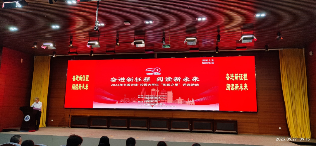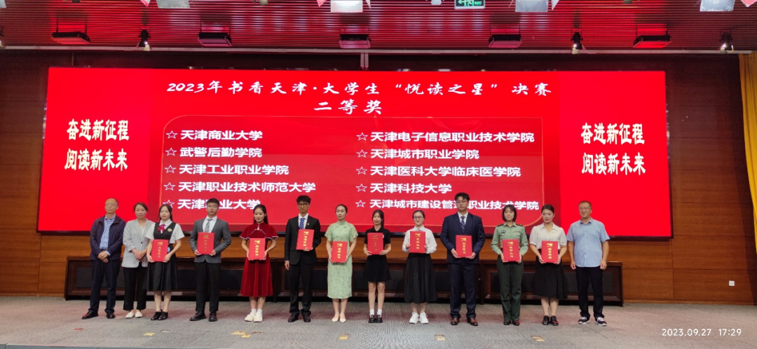 由天津市新闻出版局、市教育委员会主办,市全民阅读办、天津市高等学校图书情报工作委员会策划组织,天津中德应用技术大学承办的“奋进新征程·阅读新未来”2023书香天津·校园大学生“悦读之星”评选活动决赛于9月27日在天津中德应用技术大学会议中心举行。