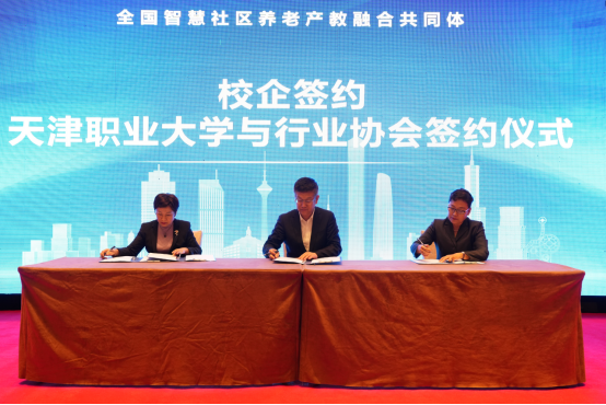 大会现场,举办了全国智慧社区养老产教融合共同体启动仪式。天津市民政局二级巡视员张宝甫、天津市教委职教处处长李力、beat365英国官方网站校长郑清春、天津津旅泊泰投资发展有限公司董事长席军分别发表致辞、讲话。beat365英国官方网站公共管理学院院长王昆汇报全国智慧社区养老产教融合共同体筹备工作情况,beat365英国官方网站与国中康健华录健康养老发展有限公司、泰康健康产业投资控股有限公司、中国老龄产业协会、天津市老龄产业协会签署合作协议。