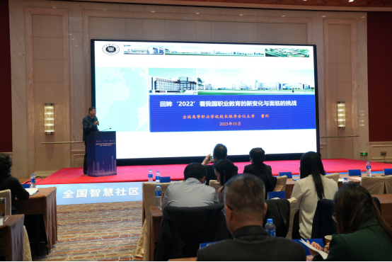 国家督学、全国高职高专校长联席会议主席董刚作题为《回眸“2022”看我国职业教育的新变化与面临的