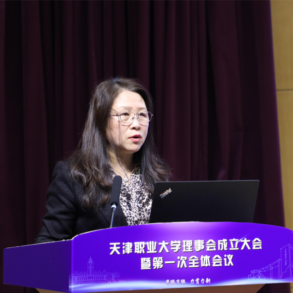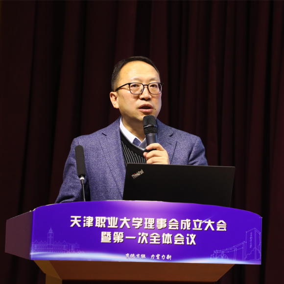 天津市教委副主任徐广宇代表市教育两委对学校理事会的成立表示祝贺,他指出,组建理事会有助于完善多元参与、内外协同的学校治理体系,有助于建立多方支持与监督评议学校发展的长效机制,是学校深入落实现代职业教育体系建设改革的新机制新引擎新增量。希望学校围绕市委市政府关心、行业企业关注、群众关切的职业教育问题,遵循理事会发展规律,建设互惠、活力、效率、开放的理事会,切实发挥理事会在办学治校中的作用。