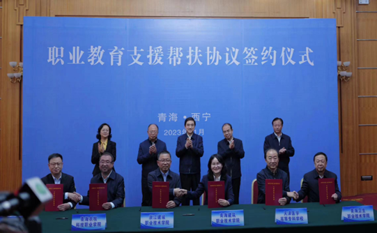 此次与青海农牧科技职业学院建立支援帮扶合作关系,是beat365继帮扶和田职院、武威职院和威县职教中心后又一帮扶院校,是深入贯彻落实《天津市人民政府 青海省人民政府贯彻党的二十大精神进一步深化支援合作框架协议》的具体举措。下一步,beat365将落实协议内容,从专业建设、课程资源建设与开发、实训室建设、师资队伍教学和科研能力提升、产教融合、国际合作与交流等方面,通过职业教育改革成果分享、专业带头人跟岗学习、学生交流、职业技能大赛指导、参与产教融合共同体建设等方式,助力青海农牧科技职业学院教育教学水平和育人成效双提升,为青海省经济社会发展和乡村振兴做出新的贡献。