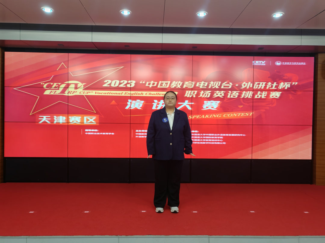 与此同时“中国教育电视台·外研社杯”职场英语挑战赛演讲大赛天津市赛也在如火如荼地进行着。尹子珂同学再接再厉,在演讲大赛中继续稳扎稳打,与来自天津16所院校的40余名选手同场竞技,展现出优秀的英语口语技能,以出色的成绩获得天津市赛一等奖。