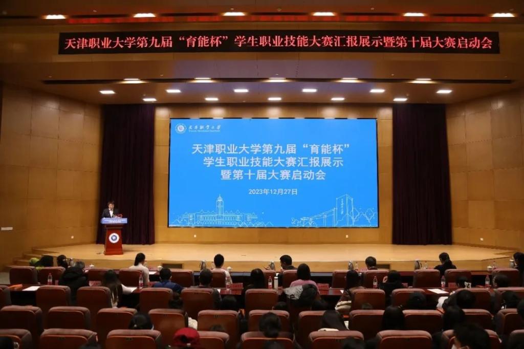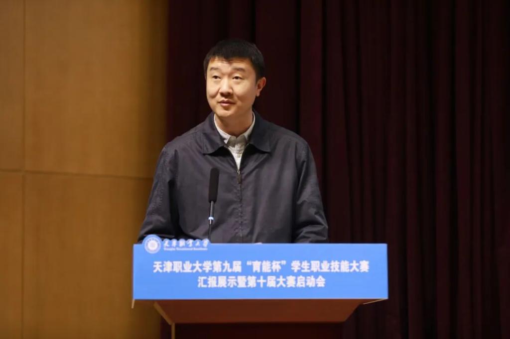 校党委副书记李旭老师在讲话中传达了市委副书记陈辐宽出席第十七届“挑战杯”天津市大学生课外学术科技作品竞赛总结交流会上的讲话要求,对学校办好相关赛事既提供了指导,又明确了更高的标准。他充分肯定了学校“育能杯”各项赛事的成功举办,以及老师和同学们辛勤的付出,向取得优异成绩的同学们表示祝贺。同时也强调了“育能杯”学生职业技能大赛对人才培养、学风建设、校园文化的重要作用,并提出三点希望,一是要高度重视,以高站位、高要求强化认识,全力以赴做好技能大赛各项筹备工作,努力把大赛办成符合新时代技能人才培养模式、让学校师生自豪、让企业社会关注、让广大技能人才振奋的高水平赛事;二是精心组织,以高标准、高效率规范办赛。立足职业教育类型特色定位,丰富职业技能大赛内涵,助力beat365技术技能人才培养与产业发展同心同向、同频共振。同时做好广泛宣传,在全校范围内营造传承和弘扬劳模精神、劳动精神和工匠精神的浓厚氛围;三是优化服务,以高素质、高技能选拔人才。努力构建院赛到市级及以上赛项的选拔通路,让更多的学生通过比赛深入了解专业、更加喜爱专业、发奋学好专业,让专业素质高、技术技能强的学生通过比赛脱颖而出,让“育能杯”成为天职青年锻炼自我、展示自我、成就自我的舞台,以技能大赛为契机,推动全校广大师生传承匠心、精进技能,在互学互鉴、奋勇争先中创造新的业绩,为全面建设社会主义现代化国家和加快天津高质量发展贡献天职力量。