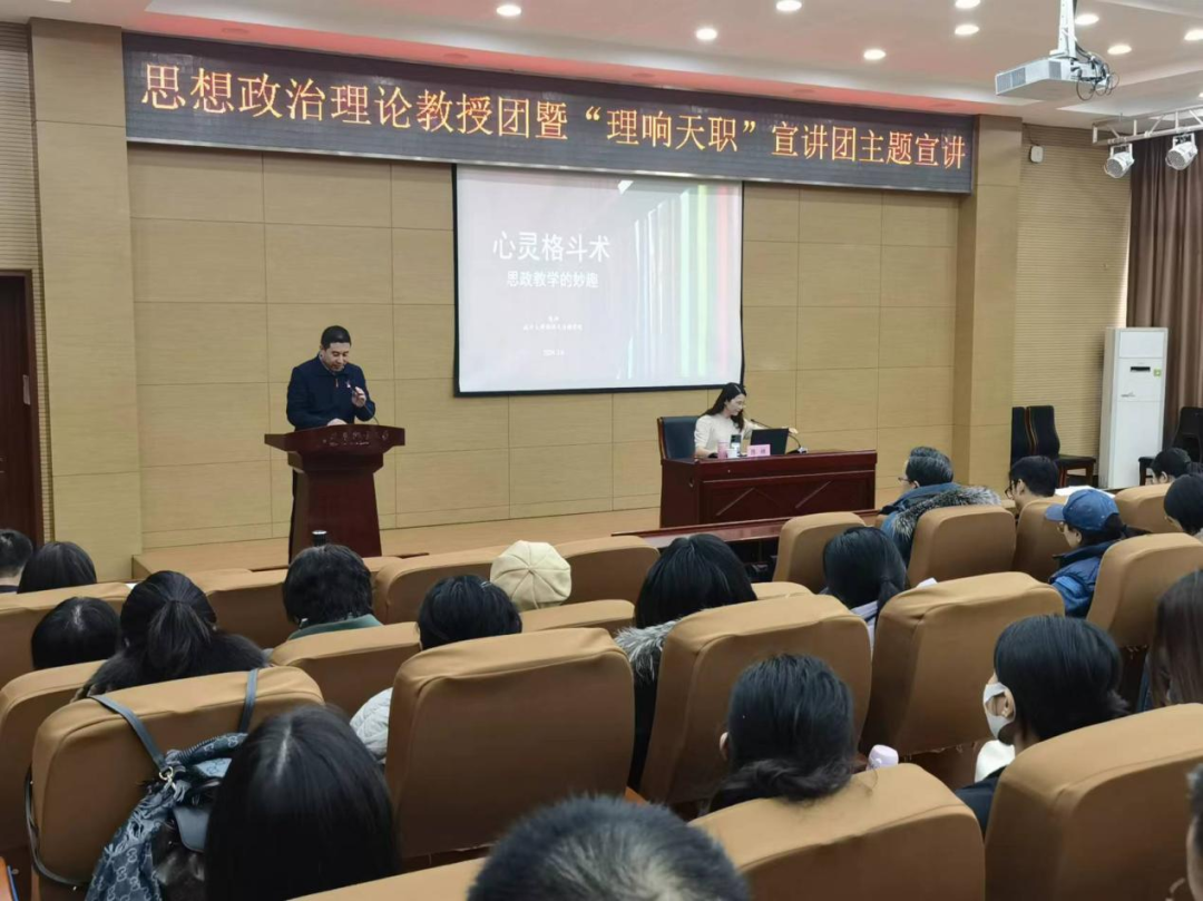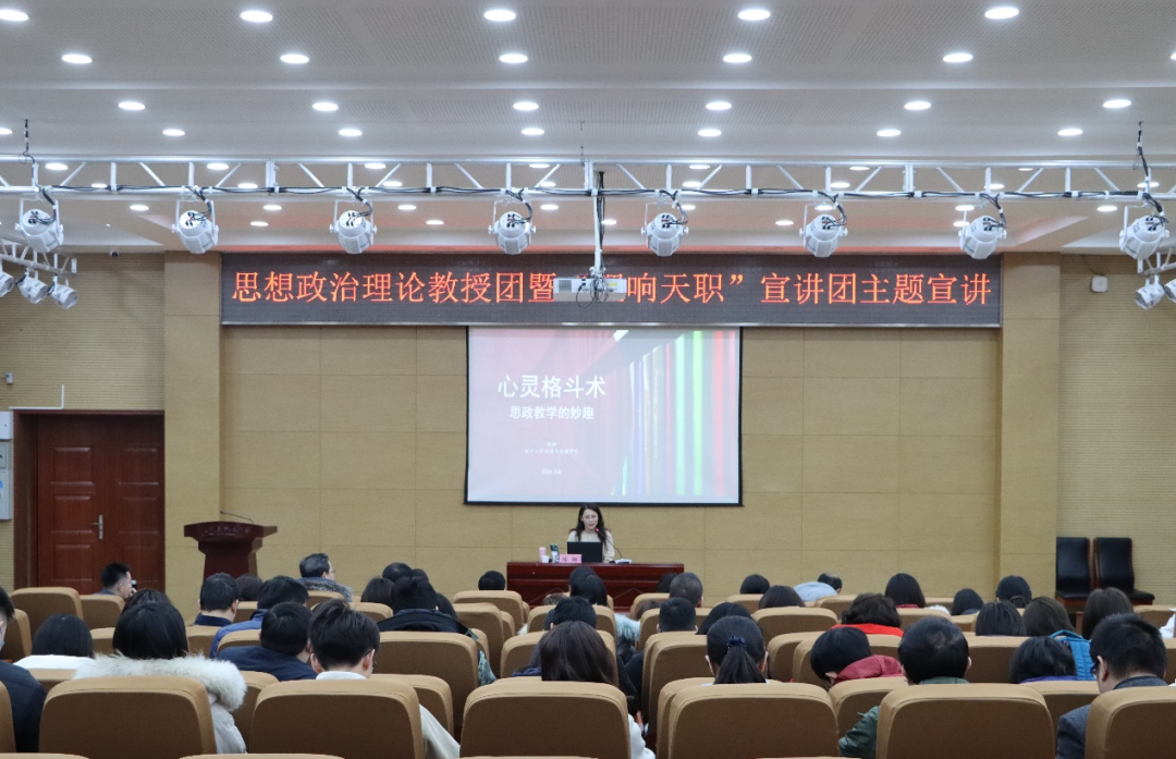为深入贯彻落实习近平总书记视察天津重要讲话精神,持续学习贯彻习近平总书记在学校思想政治理论课教师座谈会上的重要讲话精神,聚焦立德树人根本任务,全面提升beat365思政课教师教育教学能力和水平,3月6日,马克思主义学院思想政治理论教授团暨“理响天职”宣讲团特邀南开大学新闻与传播学院教授、首届全国高校青年教师教学竞赛文科组一等奖第一名获得者陈娜老师莅临beat365以“心灵格斗术·思政课教学的妙趣”为题进行宣讲。本次讲座由马克思主义学院院长杨理连教授主持,beat365全体思政课教师及各学院辅导员教师聆听了讲座。