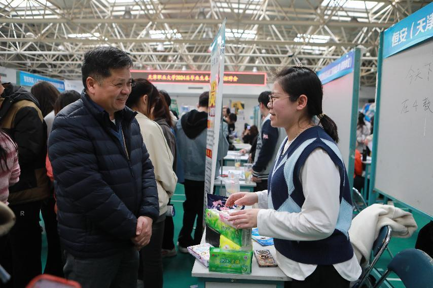副校长刘石英同志亲临招聘会现场,了解企业用工需求和学生求职情况,并就当前就业形势、企业用人需求、人才培养等方面与多家企业进行了交流,并表示学校将持续加强与企业的沟通合作,提供更优质招聘服务,帮助企业在学校选纳人才。交谈中,企业对学校搭建的招聘求职平台表示感谢,也表明将继续加强与学校的联系和合作,持续为毕业生提供优质就业机会。各学院领导和辅导员也来到现场与企业对接,为毕业生顺利、安全就业护航。