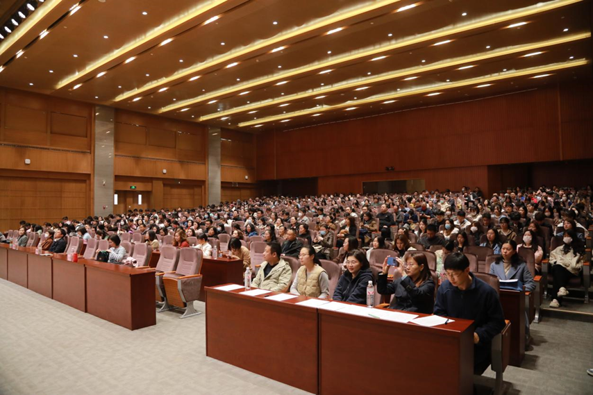为持续贯彻落实习近平总书记在学校思想政治理论课教师座谈会上的重要讲话精神,营造思政课改革创新的良好氛围,用广大师生喜闻乐见的方式阐发立德树人核心要义,增强入脑入心育人效果,在天津市教育两委统一部署下,国内首部反映思政课教师成长故事的院线电影《我要当老师》在beat365英国官方网站图书馆报告厅拉开天津市高校校园巡映序幕。天津市各高校思政课骨干教师、beat365全体思政课教师、辅导员老师、北辰区“大中小思政课一体化”中小学教师代表及beat365学生代表共450余人参加本次活动。beat365英国官方网站马克思主义学院院长杨理连教授主持本次观影活动。