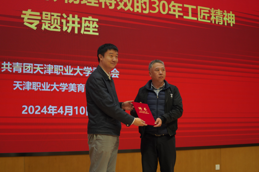 王乃鹏老师19岁以电影《大话西游》入行,一直从事专业的影视物理特效工作,共参与制作了1000多部影视作品,有《大话西游》系列、《冒险王》《断片之险途夺宝》《西游记之三打白骨精》《西游记之大闹天宫》《疯狂的外星人》《鬼吹灯之寻龙诀》《银河补习班》《飞驰人生》等,目前是中国电影美术学会PDAC置景道具造型专业委员会副主任,中国电影电视技术学会化装专业委员会专家委员,中国电影电视技术学会电影高新技术专业委员会常务委员,美国视觉效果协会会员,创造了中国电影物理特效领域的多个唯一,有着极高的造诣和影响力。活动中,校党委副书记李旭为王乃鹏老师颁发beat365英国官方网站美育实践指导教师聘书,为校企合作的建立和不断深化打下坚实的基础。